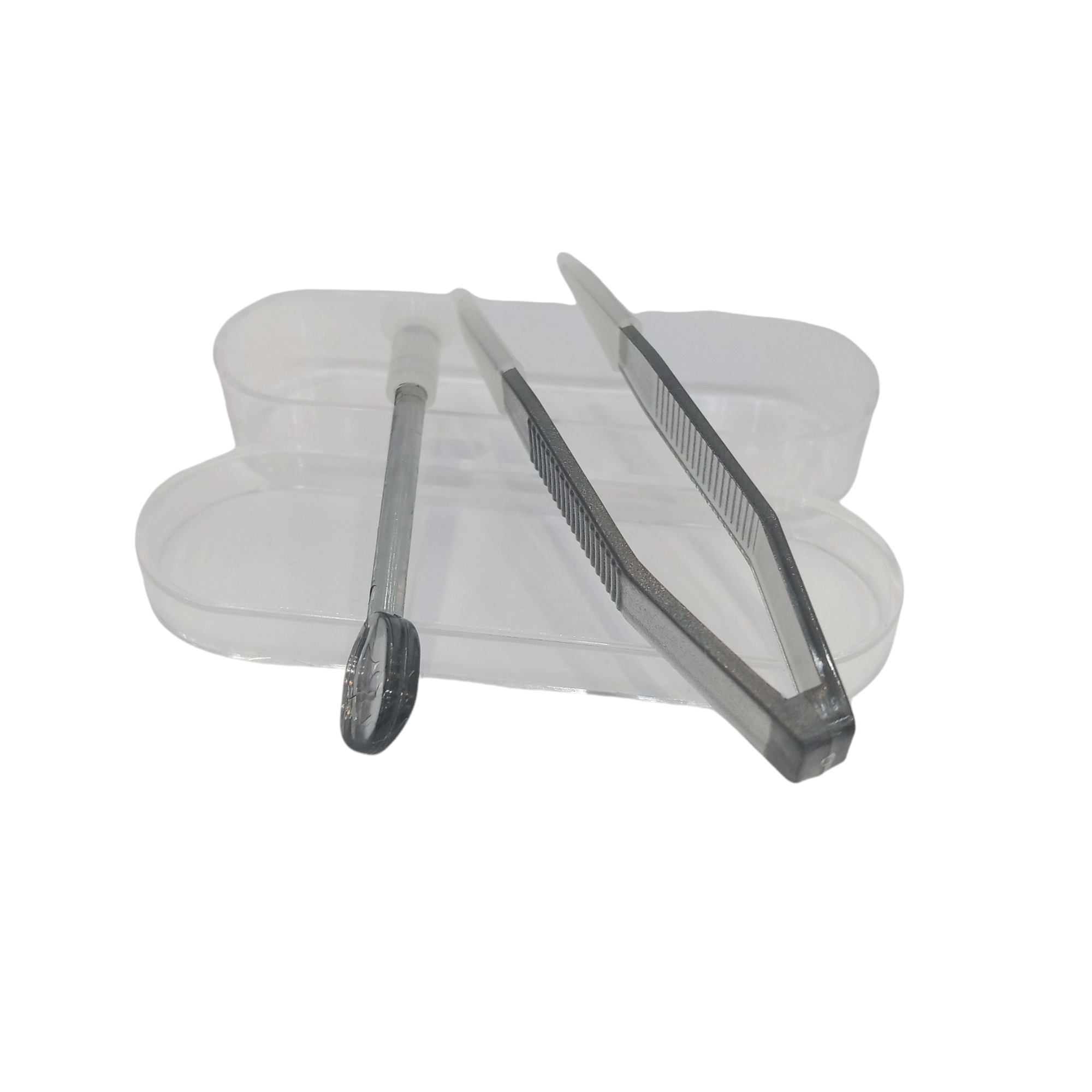 - Tweezers: Soft-tipped tweezers designed to handle contact lenses gently without causing damage or contamination.